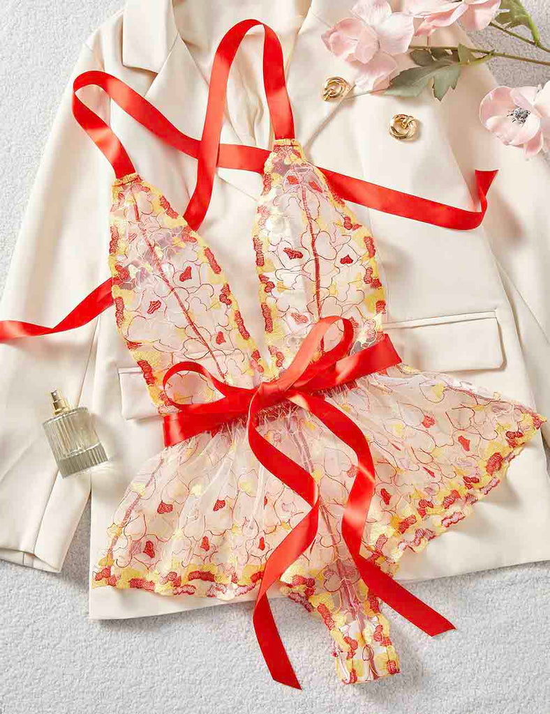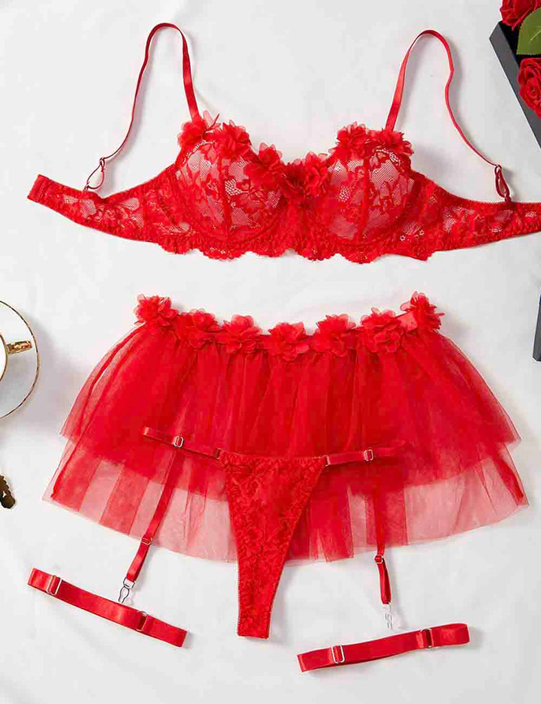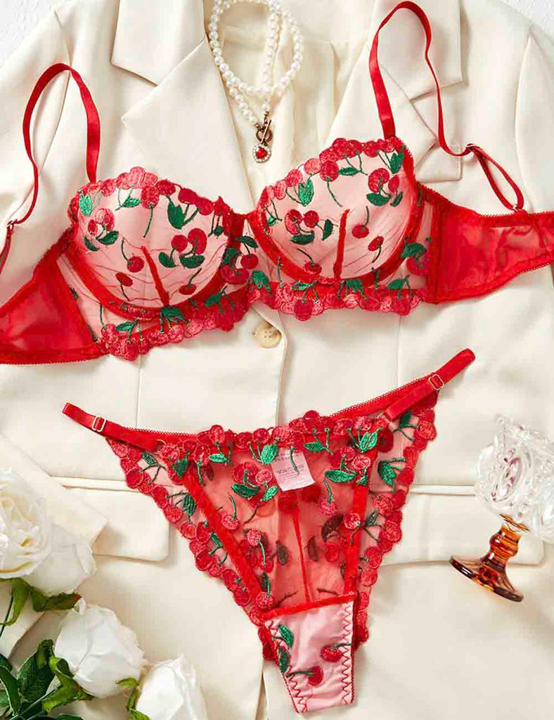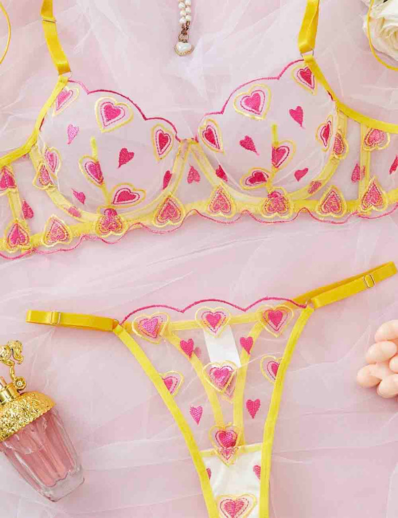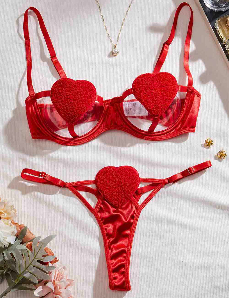 Porcia Damen Spitze Herzmuster Sexy 2ER Dessous-Set