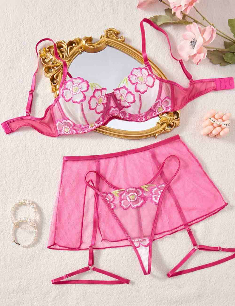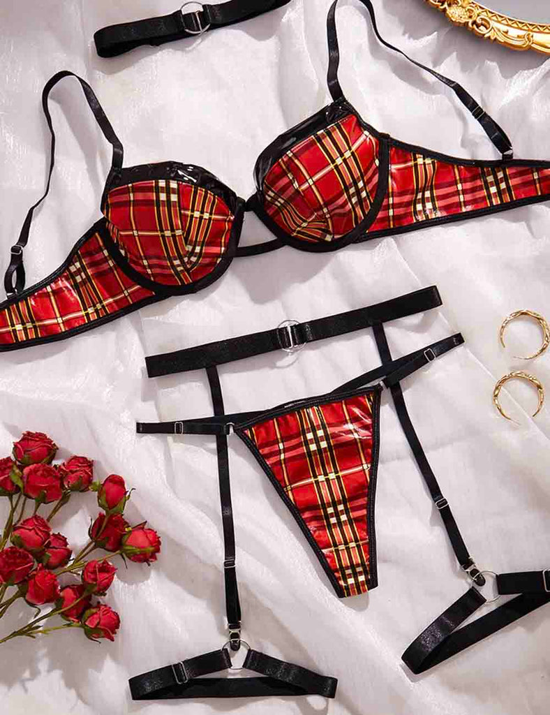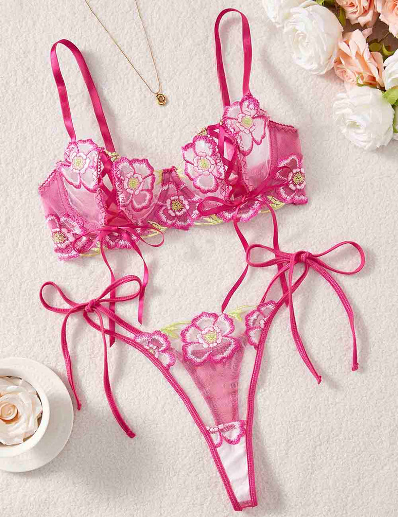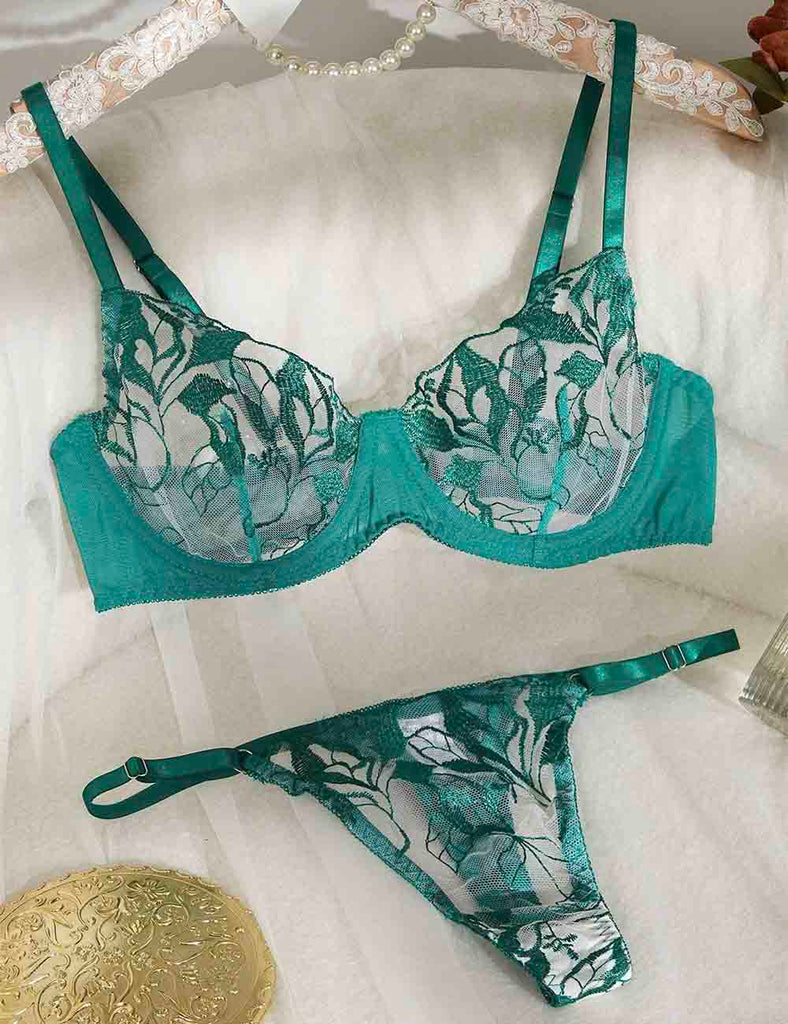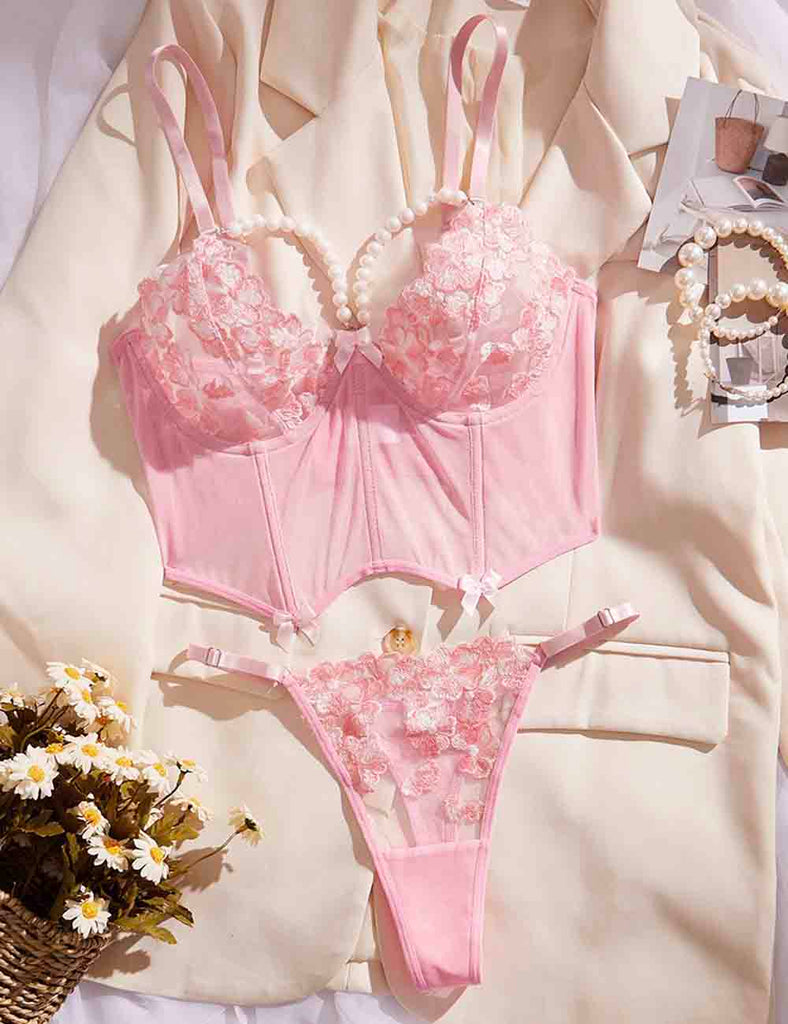 Porcia Damen Spitze Herzmuster Sexy 2ER Dessous-Set